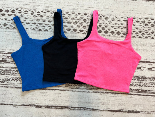 Solid Fine Ribbed Half Zip Mock Neck Crop Tank Top